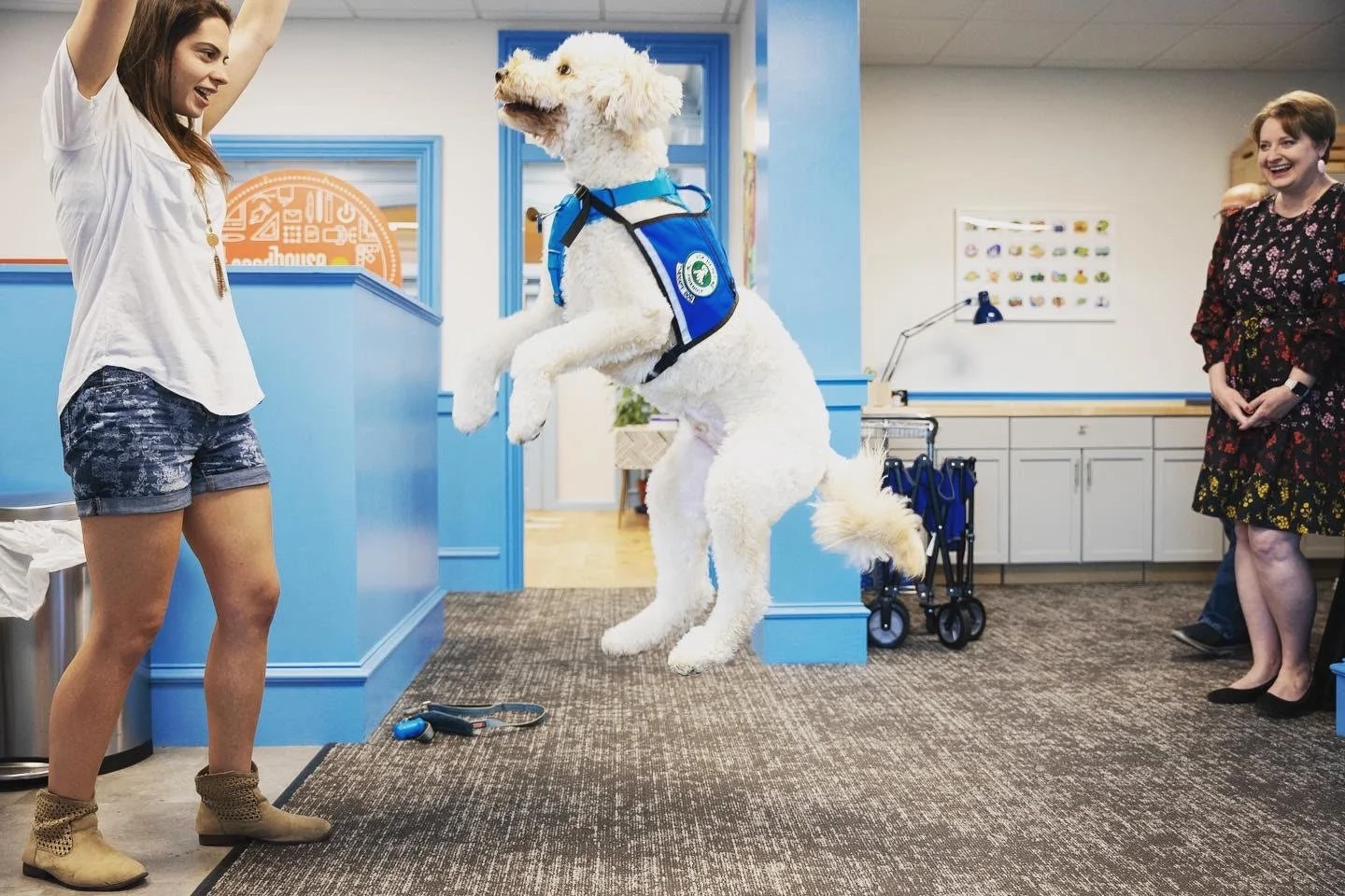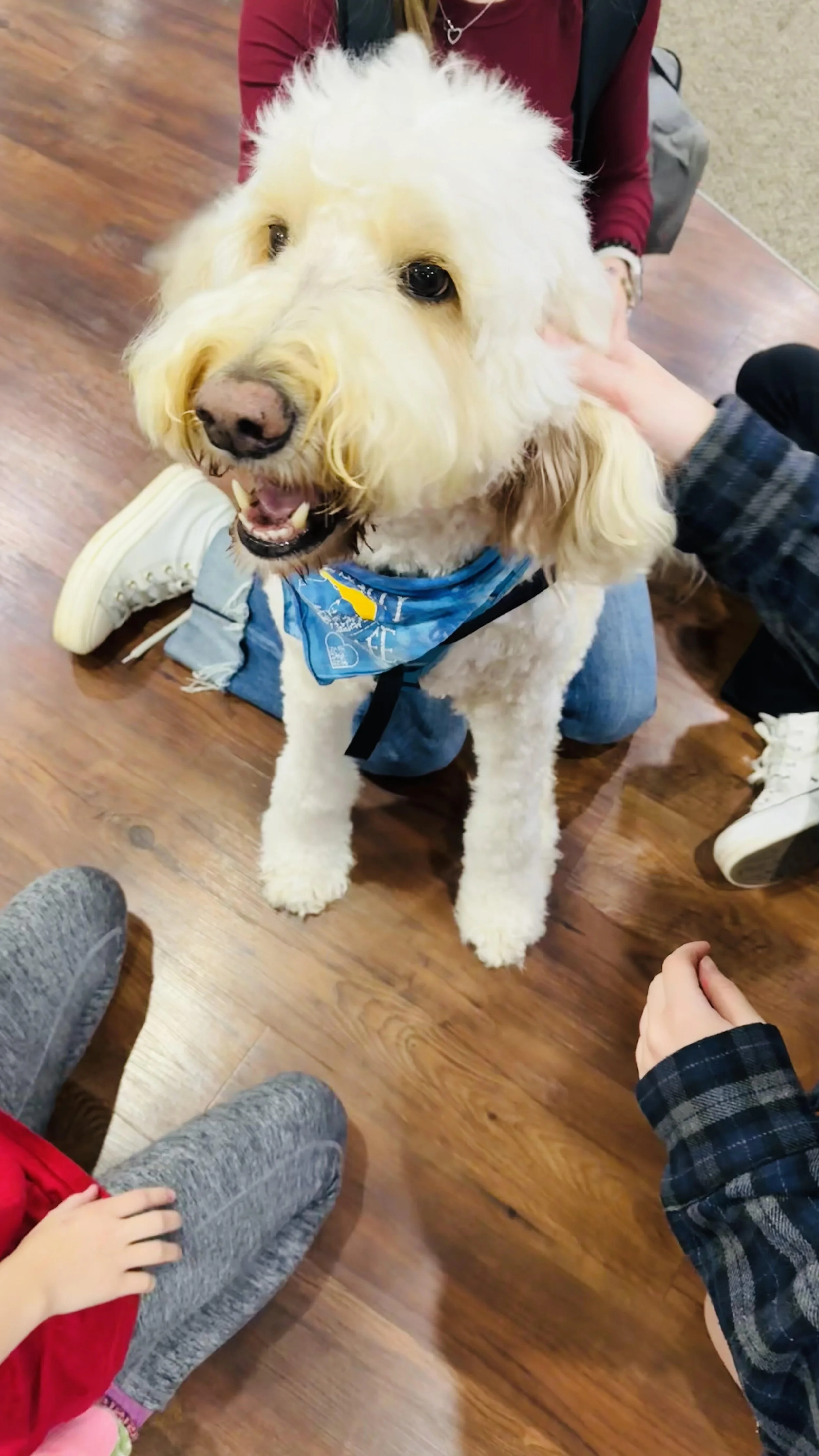 Maslow has been volunteering and working since he was just five months old. Over the years, he has supported people across all ages — from infants to seniors — in a wide variety of settings. His visits have included hospitals, nursing homes, schools, summer camps, and businesses. He has worked with children and adolescents, individuals in crisis, people with intellectual and physical disabilities, and many more. No matter the environment, Maslow has a way of meeting each person right where they are, bringing comfort, joy, and presence.