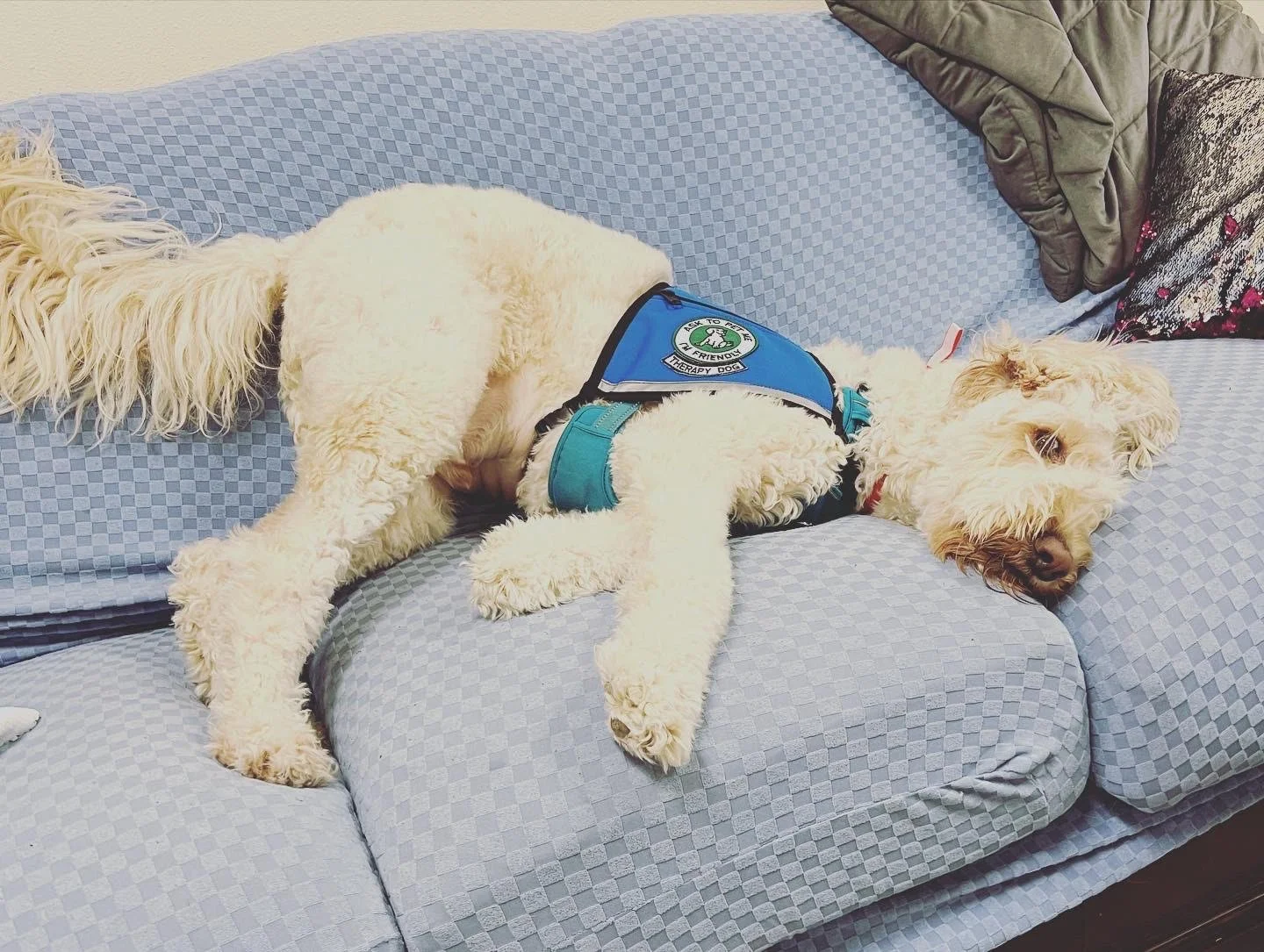 What makes Maslow a true therapy dog is not only his training but his natural personality. He is calm, patient, and deeply compassionate, with a curiosity that draws him gently toward people who need him most. He can be silly and playful, but also steady and grounding — offering exactly what each moment calls for. People feel seen and safe in his presence, and it is often his loving, kind spirit that becomes the bridge to trust, connection, and the possibility of thriving.